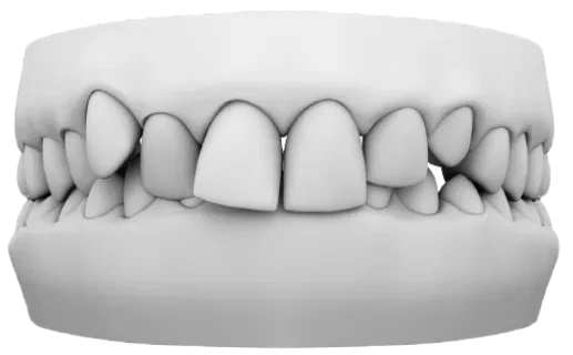 The upper and lower teeth don’t touch when the mouth is closed, leaving a visible gap between them.